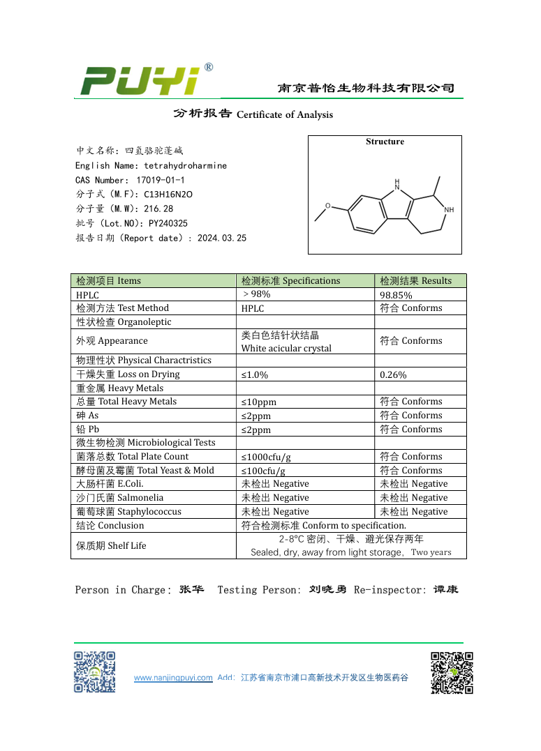 英文別名:1H-Pyrido[3,4-b]indole,2,3,4,9-tetrahydro-7-methoxy-1-methyl-;tetrahydroharmine;tetrahydro-Harmine;1,2,3,4-Tetrahydroharmine;tetrahydroharmane;Tetrahydroharmin;7-methoxy-1-methyl-1H,2H,3H,4H,9H-pyrido[3,4-b]indole;1H-Pyrido(3,4-B)indole, 2,3,4,9-tetrahydro-7-methoxy-1-methyl- (van);F1Q1E0G45A;RS-0341;17019-01-1;NCGC00246230-01;cid_159809;7-methoxy-1-methyl-2,4a,4b,8a,9,9a-hexahydro-1H-pyrido[3,4-b]indole;NSC-99788;DTXSID70901873;1H-PYRIDO(3,4-B)INDOLE, 2,3,4,9-TETRAHYDRO-7-METHOXY-1-METHYL-;AKOS016339742;7-Methoxy-1-methyl-2,3,4,9-tetrahydro-1H-beta-carboline;7-methoxy-1-methyl-2,3,4,9-tetrahydro-1H-pyrido[3,4-b]indole;BDBM50132130;Leptaflorine;Q135068;UNII-F1Q1E0G45A;1H-Pyrido(3,4-b)indole, 2,3,4,9-tetrahydro-7-methoxy-1-methyl- (VAN);A901773;Harmine, 1,2,3,4-tetrahydro-;ZXLDQJLIBNPEFJ-UHFFFAOYSA-N;MLS001049053;NS00017680;MFCD05672237;Tetrahydroharmine;NCIOpen2_006596;SCHEMBL646273;CHEMBL129208;HMS2271A13;SMR000386892;486-93-1;AB00637144-07;(+/-)-tetrahydroharmine;AKOS004119339;7-Methoxy-1-methyl-2,3,4,9-tetrahydro-1H-beta-carboline #;NSC99788;TETRAHYDROHARMINE, (+/-)-;2,3,4,9-TETRAHYDRO-7-METHOXY-1-METHYL-1H-PYRIDO(3,4-B)INDOLE;MLSMR;MLSMR