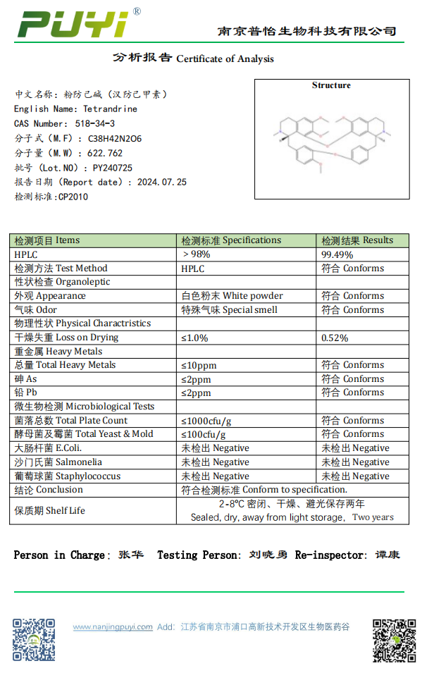 英文名稱:Tetrandrine